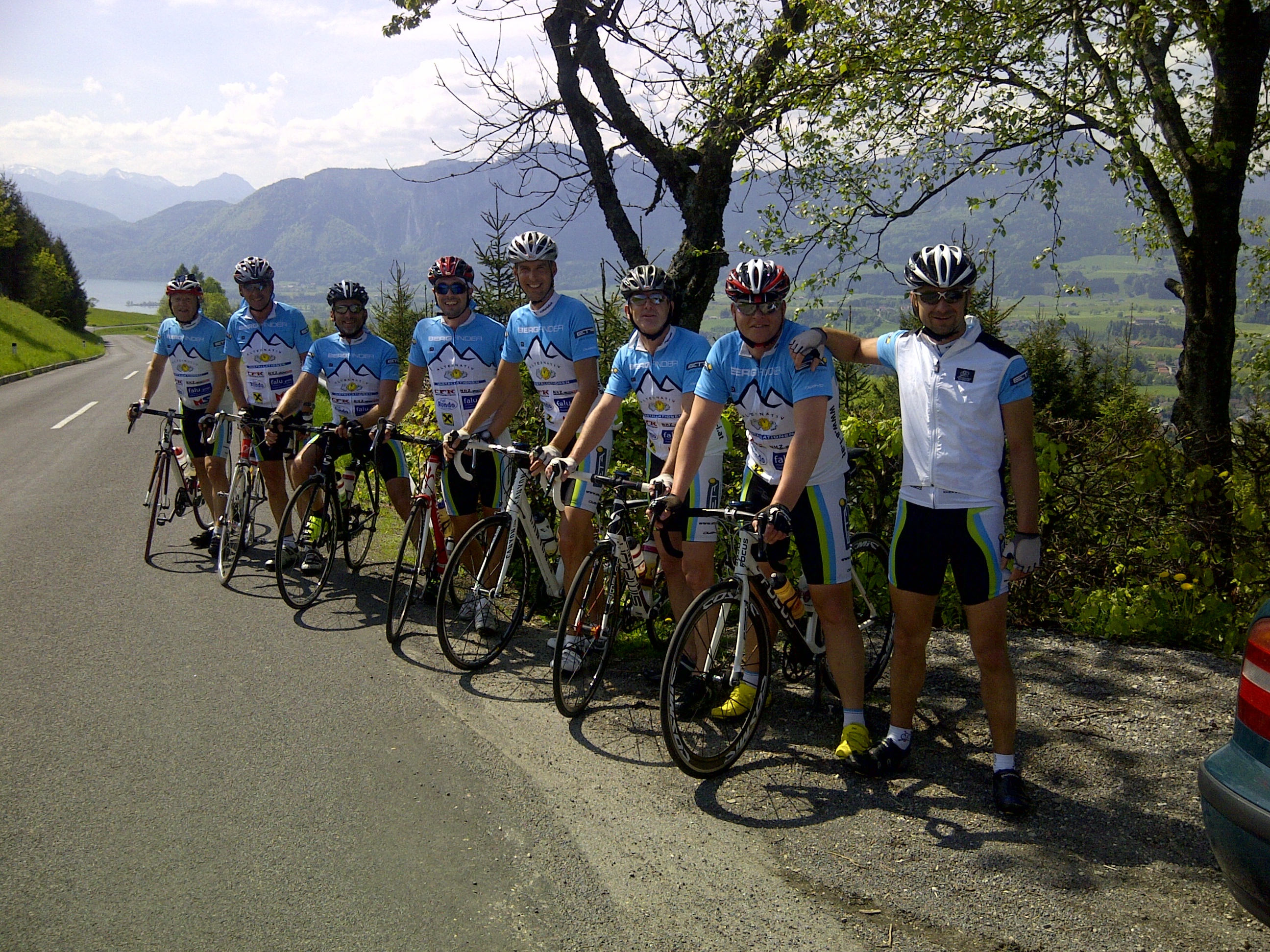 Christi Himmelausfahrt Posted on 9. Mai 2013Author Gerald 8 Bergfinder nutzen das wunderschöne Wetter am Feiertag für eine Ausfahrt ins Seengebiet (Mondsee und Attersee). Distanz: 162,02 km Zeit: 5:58:04 Ø Pace: 2:13 min/km Ø Geschw: 27,1 km/h Positiver Höhenunterschied: 1.679 m +49